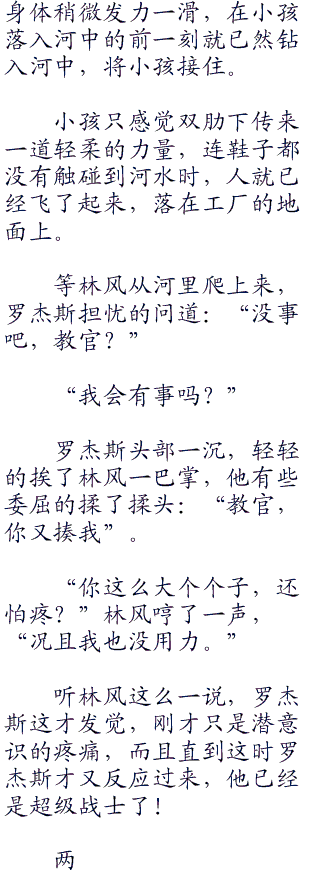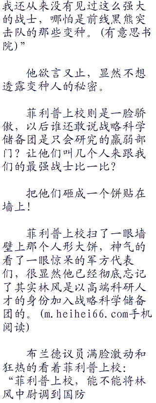 看着林风离开,布兰德议员不禁感叹道:“他真是人形的怪物,最强的战士,很难相信接受了超级战士改造的是那小个子而不是他。