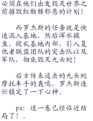 “接下来有任务交给你。红骷髅已经疯了,打算毁灭整个世界,所以我打算让你去送份大礼包给他。”