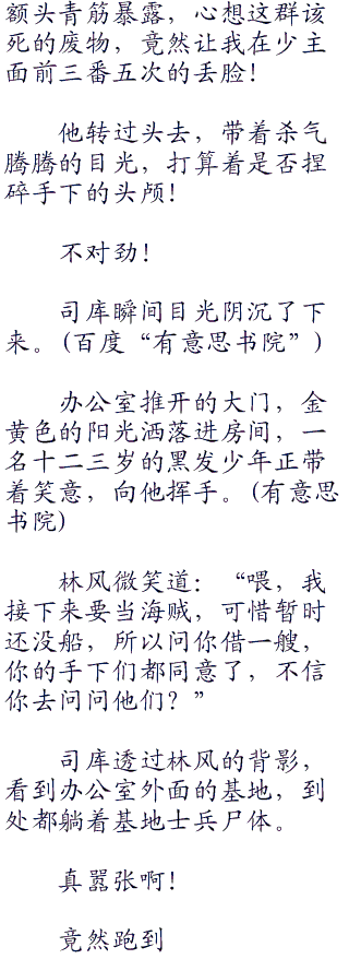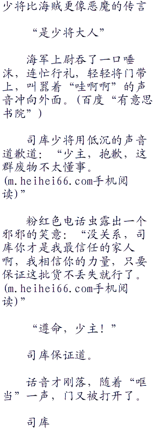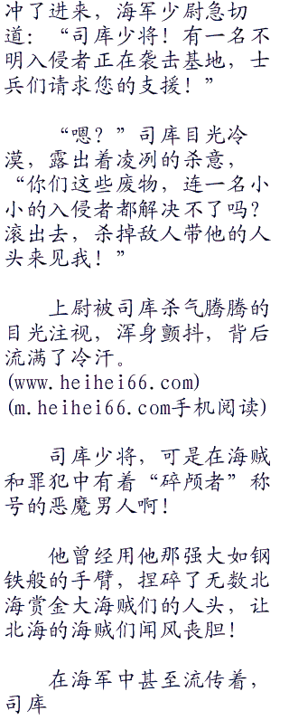 海军少将,北海基地的负责人“司库”的声音因兴奋而轻微的颤抖起来:“少主,这是我的荣幸,是我梦寐以求的结局!”