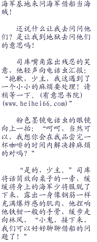电话中传出一道略带尖细的男人轻笑声:“呵呵,司库,干得很好,这次事完成之后,你就从海军退出回到我们唐吉诃德家族来吧,毕竟我们才是一家人。”