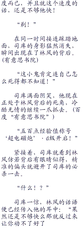 若是有现代人在场,一定会惊呼出来,因为此时的林风动若雷霆,比之全速的跑车都毫不逊色,司库接连追击了好几下都没打中。