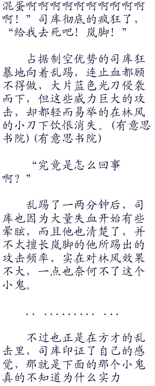 眼看自己的攻击离面前小鬼的头颅越来越近,司库的脸上不禁浮现出冷笑,但忽然间他又觉得似乎这小鬼给人的感觉完全不同了简直仿佛一下子变弱成了普通人!