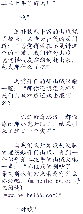 到了屋外,山贼们纷纷哭丧着脸面面相窥。