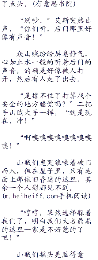 感觉胜券在握的山贼们立即又变得神采奕奕,他们聚精会神的监视着屋子,为了随时能全体出击,没有一个缺席监视,坚定的从深夜看到了凌晨。