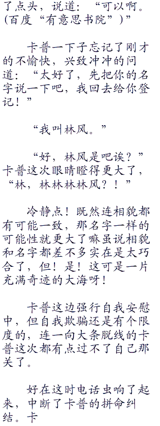 “啊?”卡普回过神来,摆摆手,“哦,我没事,就是在想点东西而已。”