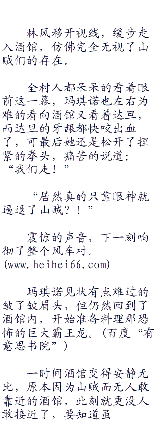 玛琪诺看上去有点不知所措,林风说得没错,无论是达旦一家还是香克斯等人,基本上到风车村都会去玛琪诺的酒馆喝酒吃饭,终其原因就是风车村只有玛琪诺这家会提供饭店的服务。