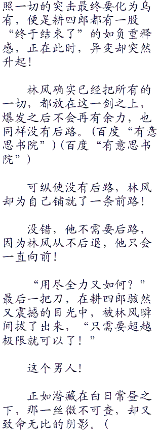 耕四郎闻言一阵恍惚,他不明白,在这种困境下林风还能怎么改变。