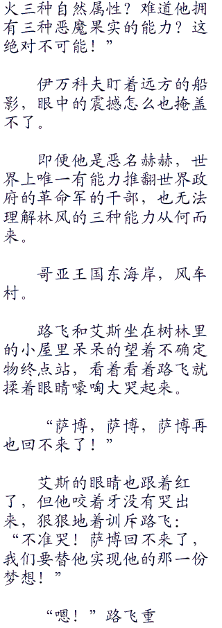 “但是,现在一切都不一样了!”古伊娜的声音高昂了起来,“我终于见识到了真正属于剑豪的力量,一个崭新的世界!父亲,我要去大海,去那强者如云的大海!”