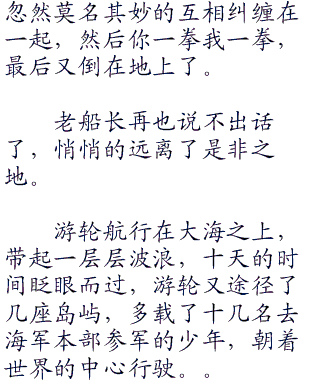 这艘游轮上一半的人都是前往海军本部参军的,其中以青少年为主,还有一些年纪偏大的男人。