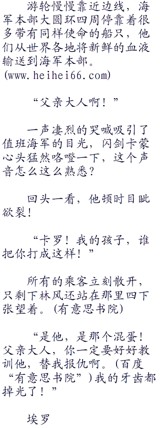 无论是游客还是前来参加海军的人都不停的发出感慨,只有一个鼻青脸肿全身是伤的可怜少年和两名同样伤势的高个子保镖痛哭流涕,尤其是当他们看到一位站在岸边眺望过来的海军上校时,更是嚎啕大哭,止不住的眼泪让人看着心酸。
