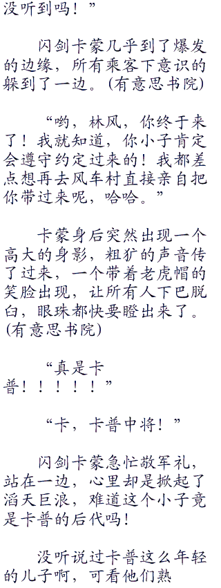 “少年,你完了。闪剑卡蒙看到他的儿子是这种惨状,一定不会放过你的。”一名乘客叹息一声,口吻中带着怜惜。