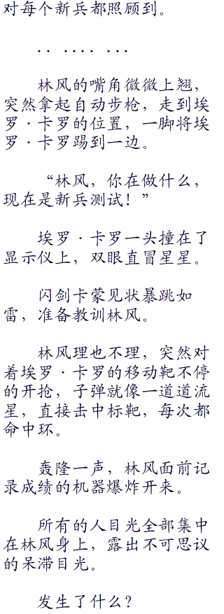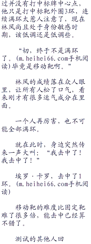射击对来说林风并没有什么难处,自己要拿上一个好的成绩,只要稍微显动一下手指就可以了。