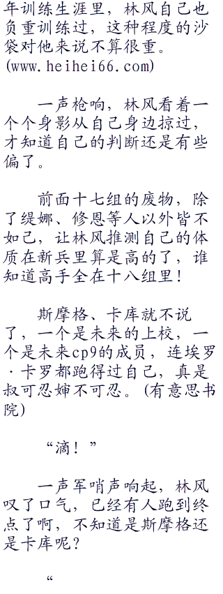十八人一组,与射击考核时的分组顺序略有不同,林风和众人一起站到了起跑线上,在教练的帮助下给手臂和脚腕戴上了沉重的沙袋。