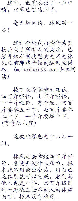 林风依旧在那里不停地运动,现场的嘲笑声自始自终没有停过,反而愈演愈烈。