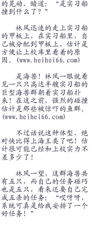 林风看看笑而不语,也漫步走上了实习船,只是脑中还在回想着任务内容。