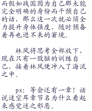 好在林风有了本身便是体术名家,经验丰富的他很早便充分消化了那天的训练成果反哺身体,不然贸然进入漩涡海流,下场只有木分身死亡。