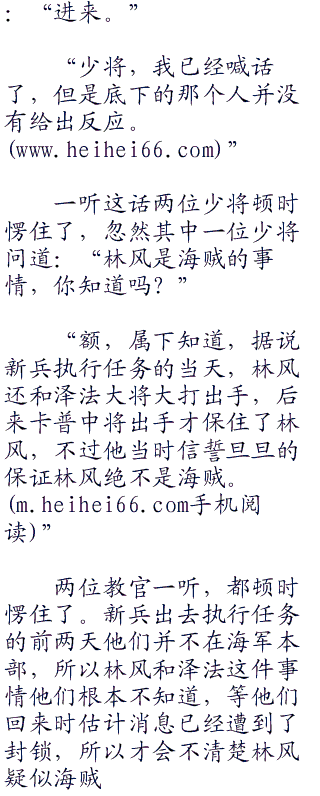 “林风疑似海贼,所有对他的新兵训练一律停止,暂时将其