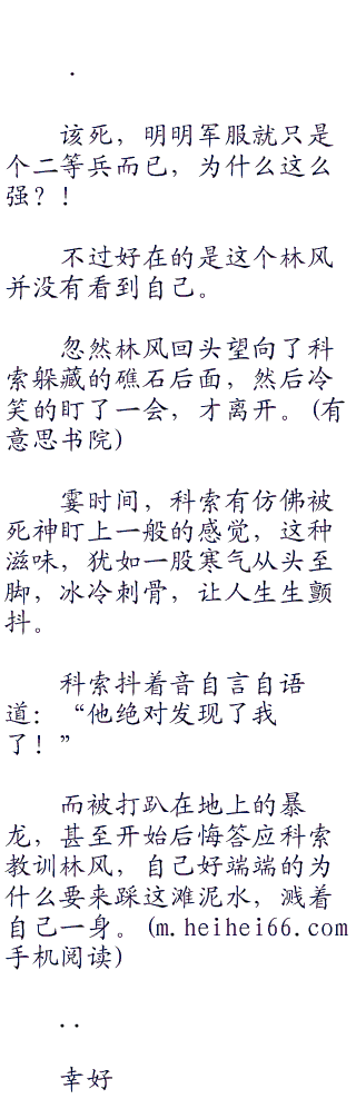 接着少将让林风进入小屋,然后按下墙上一个按钮,林风在机关的轰鸣声中离开了这个秘密训练场。