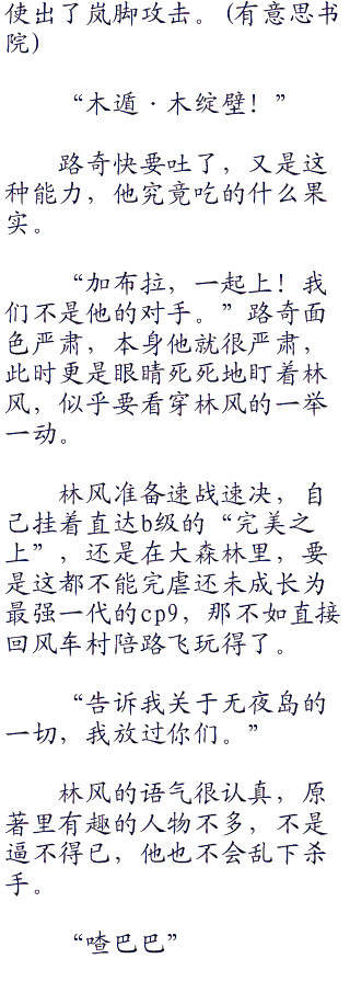 指枪射穿洞孔,岚脚踢断的树木,看来那几个家伙并不擅长应对这种怪异的场面。