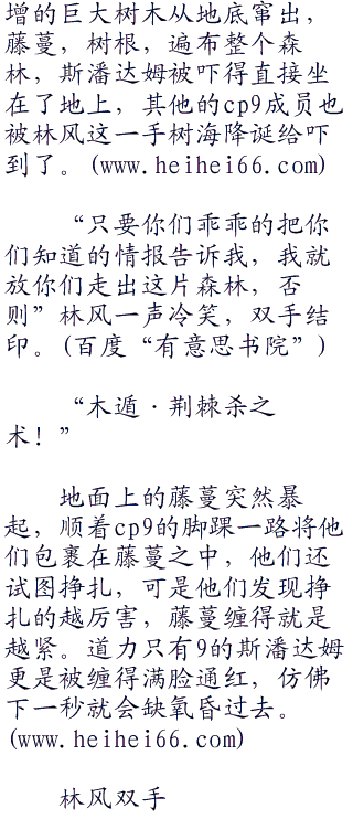 树海降诞,实际上就是作为木遁奥义的树界降诞的简化版,现在的林风只拥有b级的完美之上,想释放奥义级别的木遁实在勉强,因此就作为替代的使用了连大和都能用的树海降诞了。