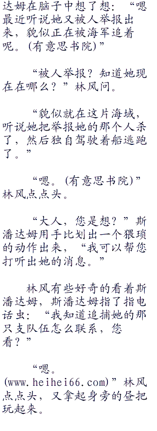 斯潘达姆一愣,不知道林风这句话什么意思:“不知道您说的是什么意思?”