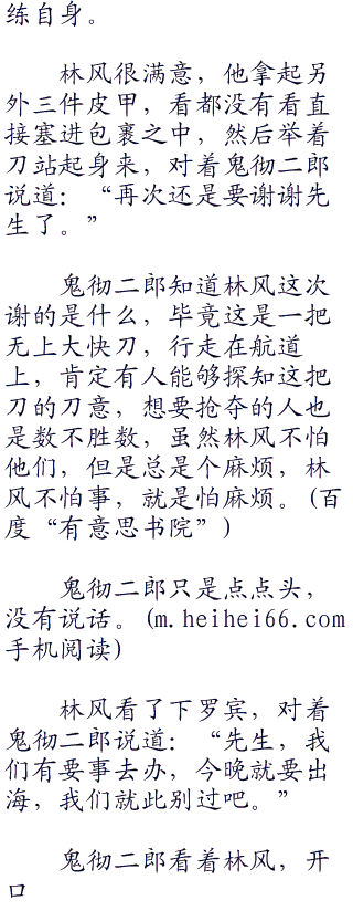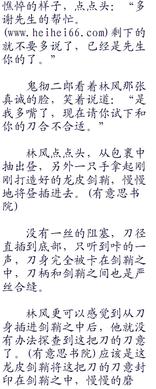 待林风他们坐下,鬼彻二郎从地板上取出林风所需要的剑鞘和两件皮甲,他对着林风说道:“不负众望,一个晚上加一个白天,终于将这四样东西做好。剩下的那些龙皮我就收下了,以后可能还有些用。”