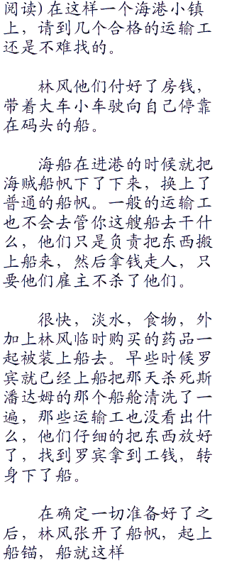 所以两个人是格外的低调。只是出门准备好船上需要的东西,然后就返回酒馆里的房间,商讨着航线以及到了地方的具体措施。