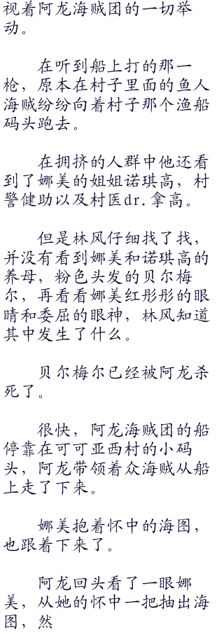 看到娜美的表情,阿龙笑的更大声了。娜美没有理睬阿龙,转过头继续趴在桌子上画着自己的海图。