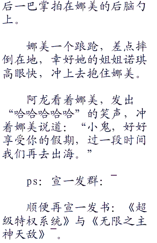 阿龙低头看着娜美已经完成的海图,点点头,大声说道:“很好,很好。娜美啊,看来很快你就要做上我们阿龙海贼团的首席航海士,我也要给你涨工资了。”