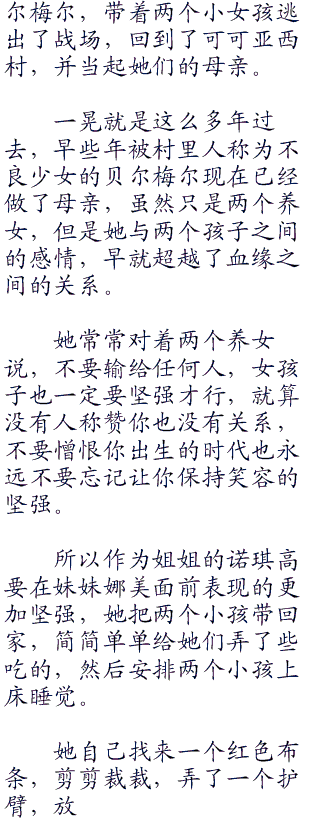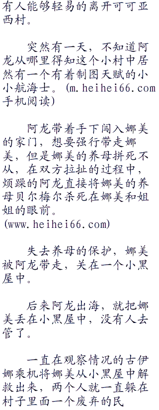 可可亚西村中,诺琪高带着娜美和古伊娜回到家中。