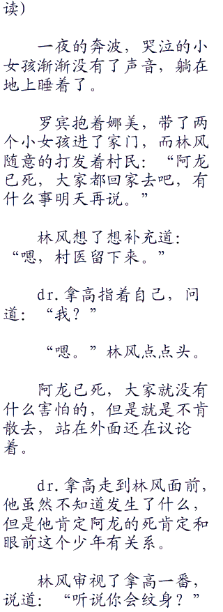 林风看着脚下的阿龙,知道他已经死了,因为林风已经让他直接到达了自己生命中的死。