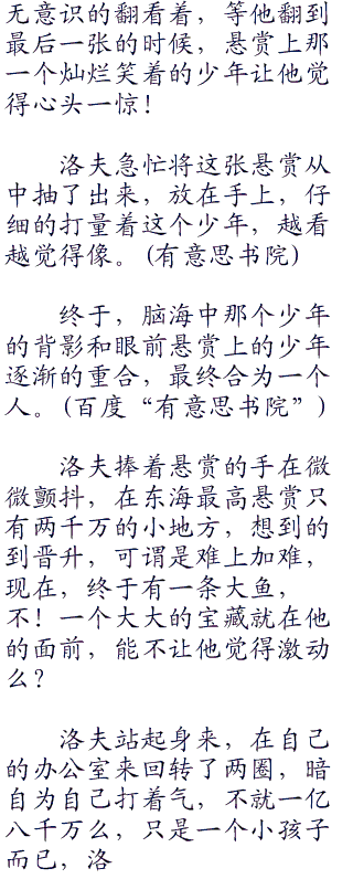洛夫结束了今天的巡逻回到自己的办公室,回想到看到的那个带着帽子的背影,越想越觉得奇怪,他往椅子上一座,架起腿,习惯性地拿起桌子上的悬赏。