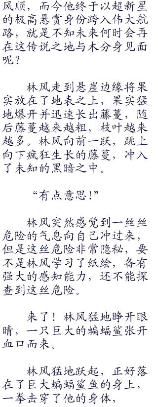 想必这就是颠倒山了,林风站在甲板上能够感受到阵阵海风,他又跳上海王类的身体,拍拍它,对着他说:“好了,这里不需要你了,你可以回去了。”