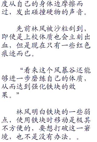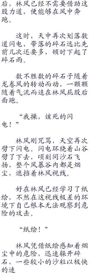 林风看到这一幕,明白是必须要将自己的速度提升起来才行,不然就一定会死在这个山谷里!