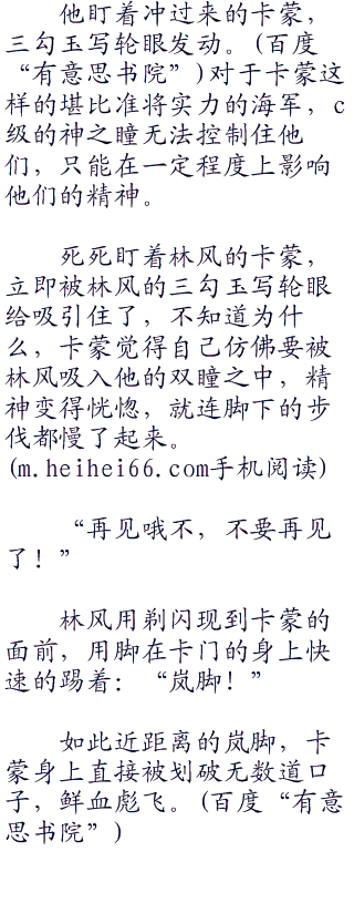卡蒙看着林风,冷冷说道:“呵,剃么?偷学海军六式,你罪上加罪,还是乖乖跟我回去吧。”