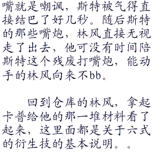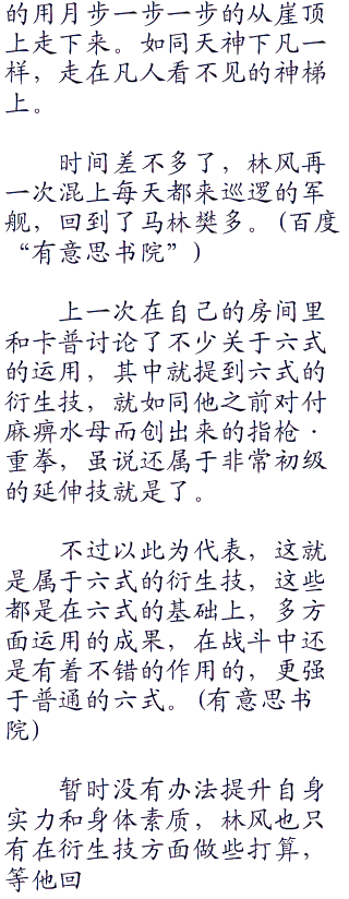 相较于其他五式来说,这月步简直就是最简单和安全的了,只有学会了月步,才算完整学会了六式,对于这个还是比较羸弱的身躯才能出去寻找海兽的秘密,那可是一万经验啊,想想林风都要流口水,现在地主家实在没有余粮。