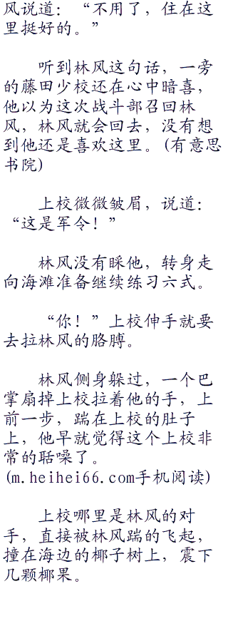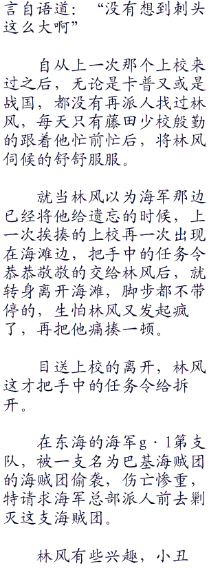 卡普早就想好说辞:“这样吧,我们个让一步,你把林风调到战斗部去,只做一个小兵,让他出去讨伐海贼,我们再看看他的品性,怎么样?”