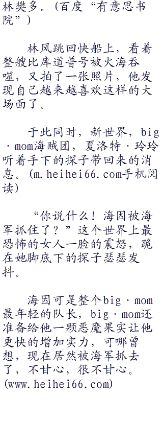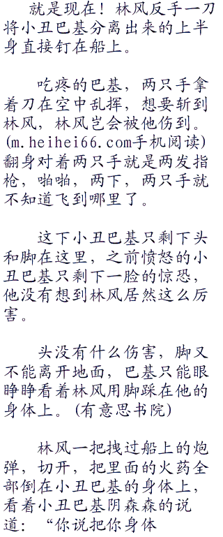 林风很快就追上小丑巴基的比库道普号海贼船,对于小丑巴基这样的小角色,除了杀了他麻烦点,剩下的就没有什么了。