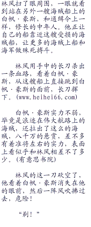 再看看他的手下,没别的,就是人多,根据资料上显示,白帆·豪斯不知道从哪里拉来一批难民,弄了两艘船,就带着他们满世界跑,期间也拉拢了不少实力不错的海贼,但是都没有被林风放在眼里。