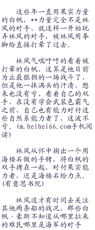 林风艰难的从洞里面爬了出来,在这最强的自然系恶魔果实面前,自己的一切都仿佛不起作用了,林风在心中不断的想着对策。
