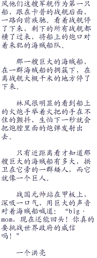 在卡普的调配下,整个海军总部都加强了守卫的力量,对所有进入马林樊多的人都加强了检查,所有有嫌疑的人都被扣留,押进监狱里面一一审问,有一些胆子比较大的海贼在闯进马林樊多的时候就这样莫名其妙的被抓了进去。