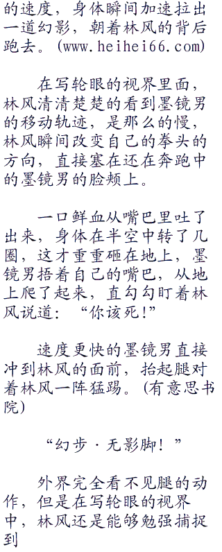 林风不准备坐以待命,也开始跑了起来,林风早就看了出来,墨镜男除了速度快之外就没有其他的攻击方式了,就连一把额外的武器都没有,全靠自己的手脚。
