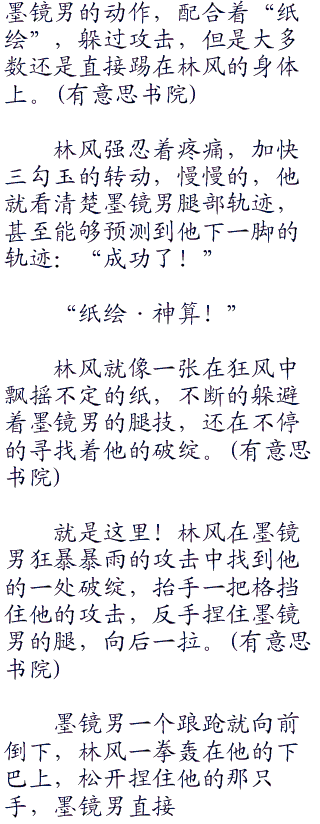 林风没做任何准备,就被墨镜男的腿击中,打在身体上,发出