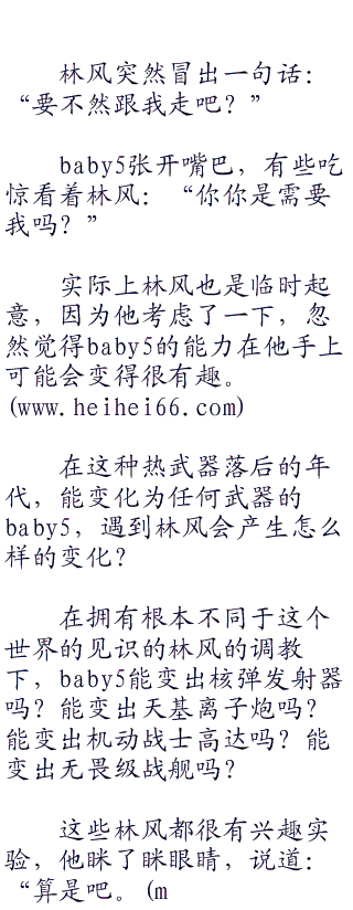 林风也注意到这个少女了,一身红色的女仆装,还有满身的武器,这不是baby5么?