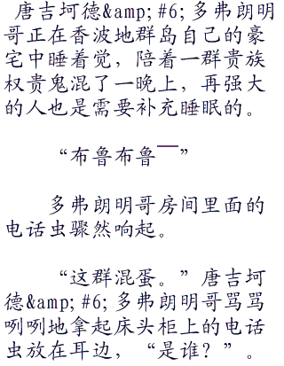 那个男子还准备进一步发展的时候,baby5才赫然发现时间不够了,为了完成唐吉坷德&a;a;#6;多弗朗明哥的任务,她也只好对着男子说了句抱歉,这才动身前往之前同伴告诉她的位置。