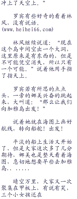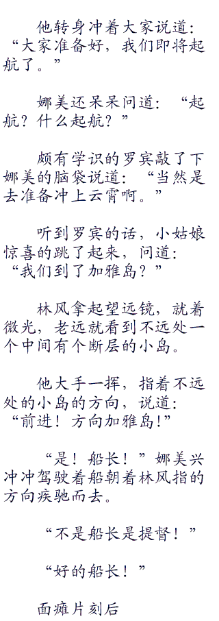 “是的。”林风回道,“但是这个世界上没有人相信真的有空岛的存在。”
