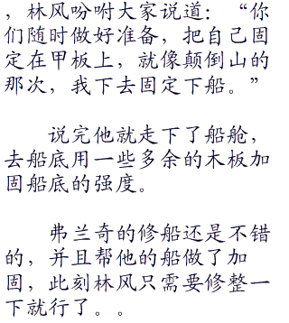 甲板上的四个人听到吩咐,纷纷跑进船舱,但是又担心地在舱门那边伸出脑袋看着林风。