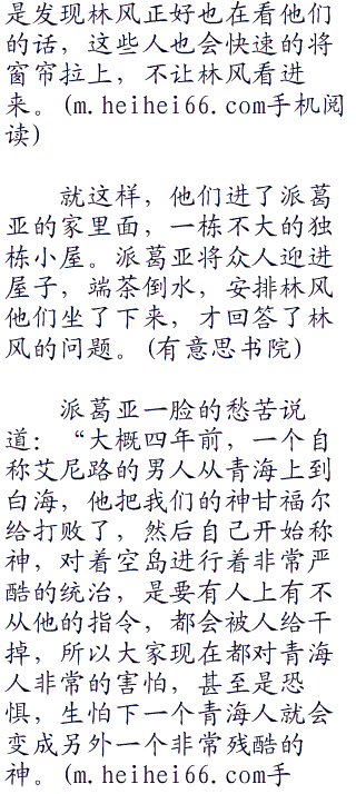 在派葛亚的带领下,林风一行人朝着空岛的方向走了过去,直到进了村落,林风他们才时不时从房屋的窗户窗帘背后看到一双双看着外面的眼睛。若
