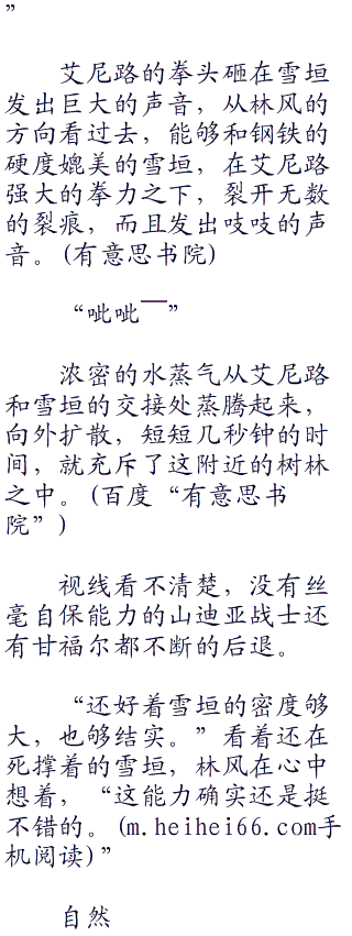 林风看着不断冒着热气的艾尼路的双拳,也立刻做好了准备,将和泉插在地上,伸开双手,朝向前方,从身体制造出来的雪不断堆积,变成一道厚重积雪构成的白色墙壁。