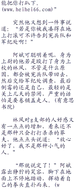 林风一声冷道:“哼!我怎么了?我现在是你们的长官,这是你们没有办法选择的!”